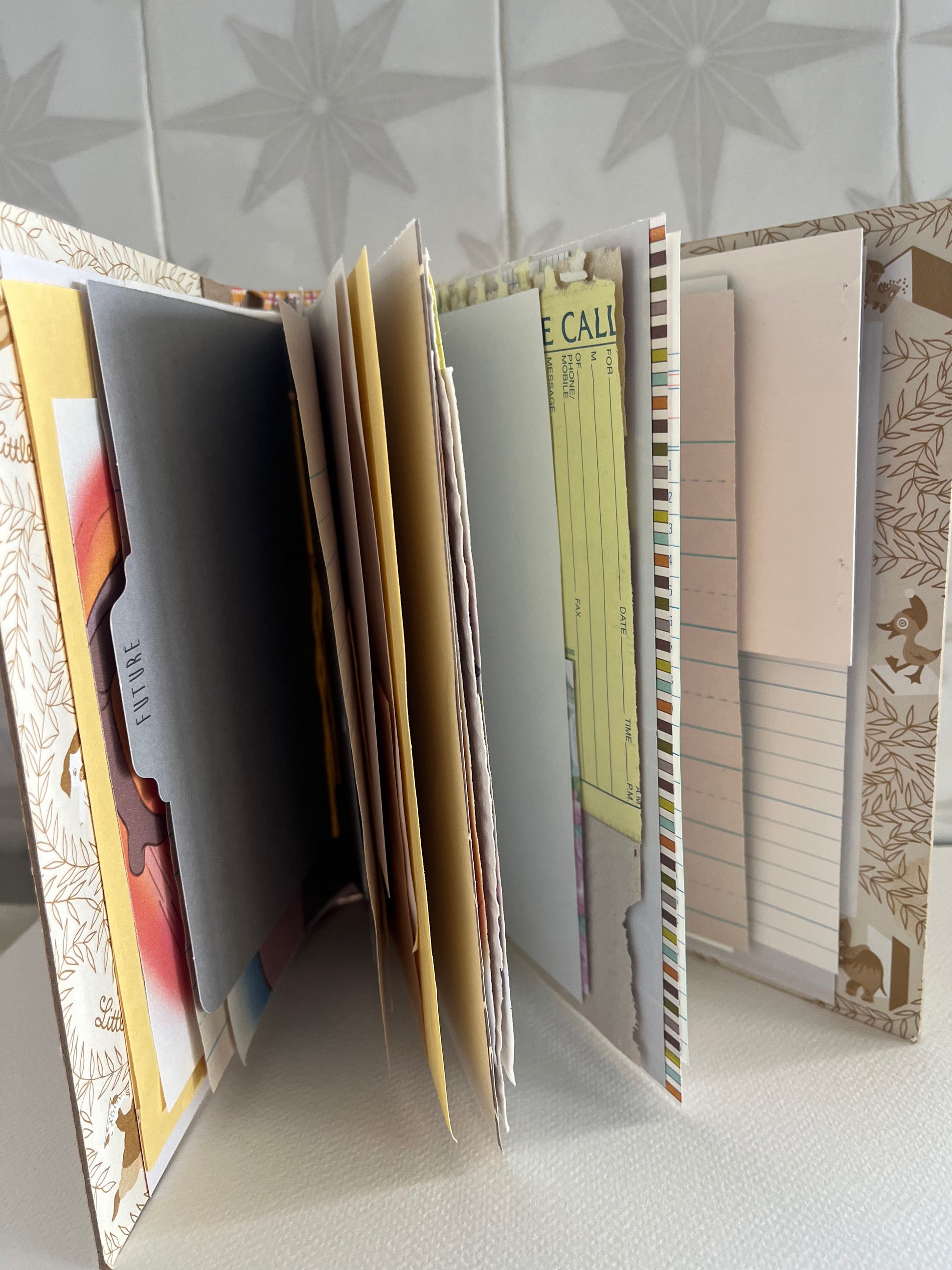 Last picture is example of what finished, filled and junked-out journals can look like.