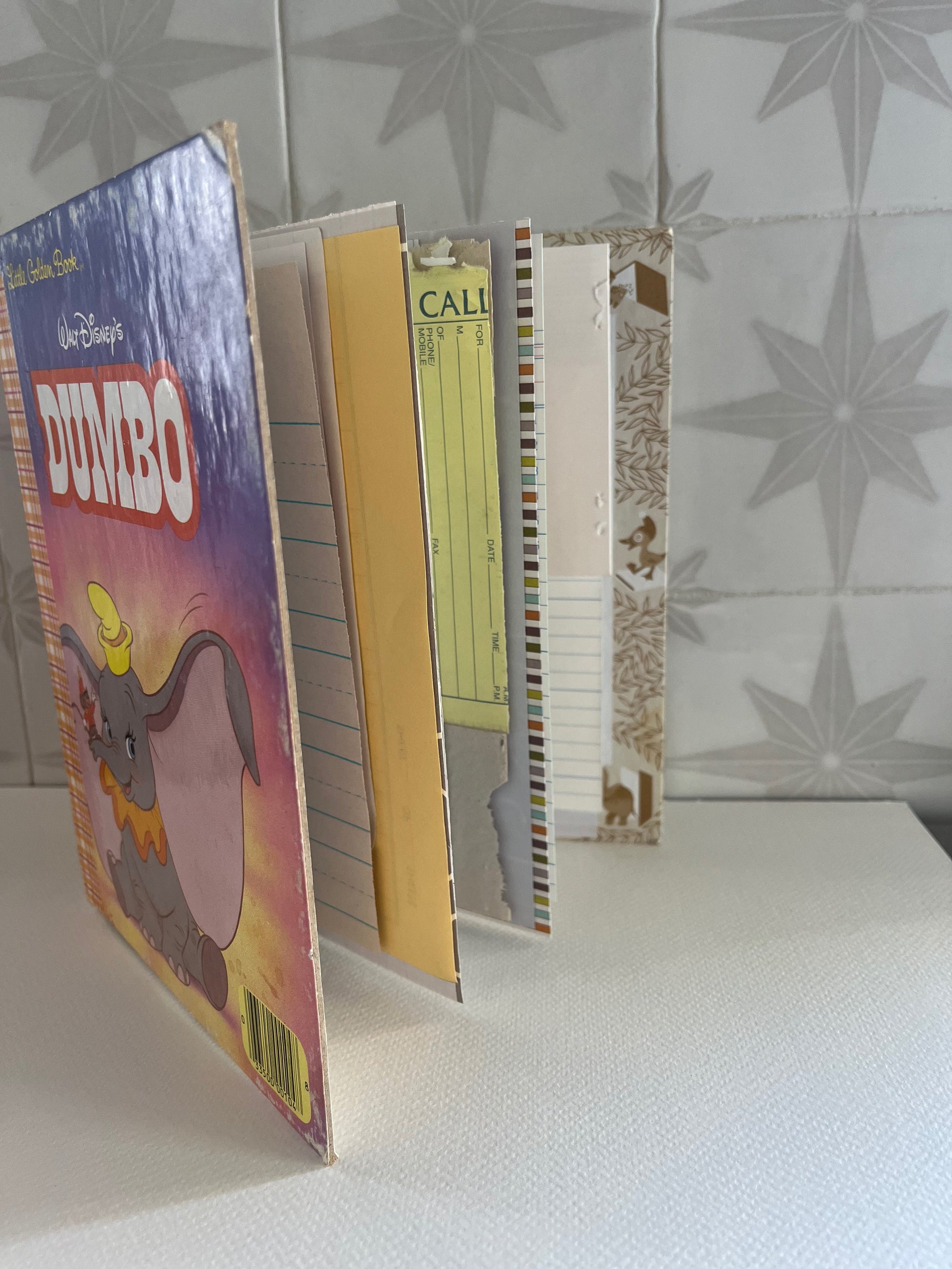 Fly back in time with this whimsical junk journal made from a 1988 vintage children's book. Lovingly transformed and filled with a mix of original storybook pages and beautiful pages of old and new. Whether you're jotting down memories, prayers or gratitude points, this Dumbo journal is ready to take you on a heartfelt journey.
